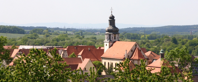 Das mittelalterliche Städtchen wurde im 12. Jahrhundert aus der Lage in der Talaue, wo Gochsheim schon 804 als zum Besitz des Kloster Lorch gehörig genannt wird, an den heutigen Standort verlagert. Hier, auf dem langgezogenen steilen Felssporn, der fast wie eine Insel dreiseitig durch das Tal des Kraichbachs eingeschnürt wird, hier hatten die Herren von Eberstein eine Burg errichtet und den leibeigenen Bauern das attraktive Angebot zur Ansiedelung gemacht: "Stadtluft macht frei"- nach einem Jahr und einem Tag waren die Neuansiedler freie Stadtbürger. Marktrecht, der unmittelbare Schutz der Grafen von Eberstein, Handel und Wandel, die Handwerkszünfte, die Stadtmauer als Außenschutz - all dies sorgte für eine schnelle Blüte Gochsheims, und von Anfang an stand auch die Kirche im Mittelpunkt des Lebens.